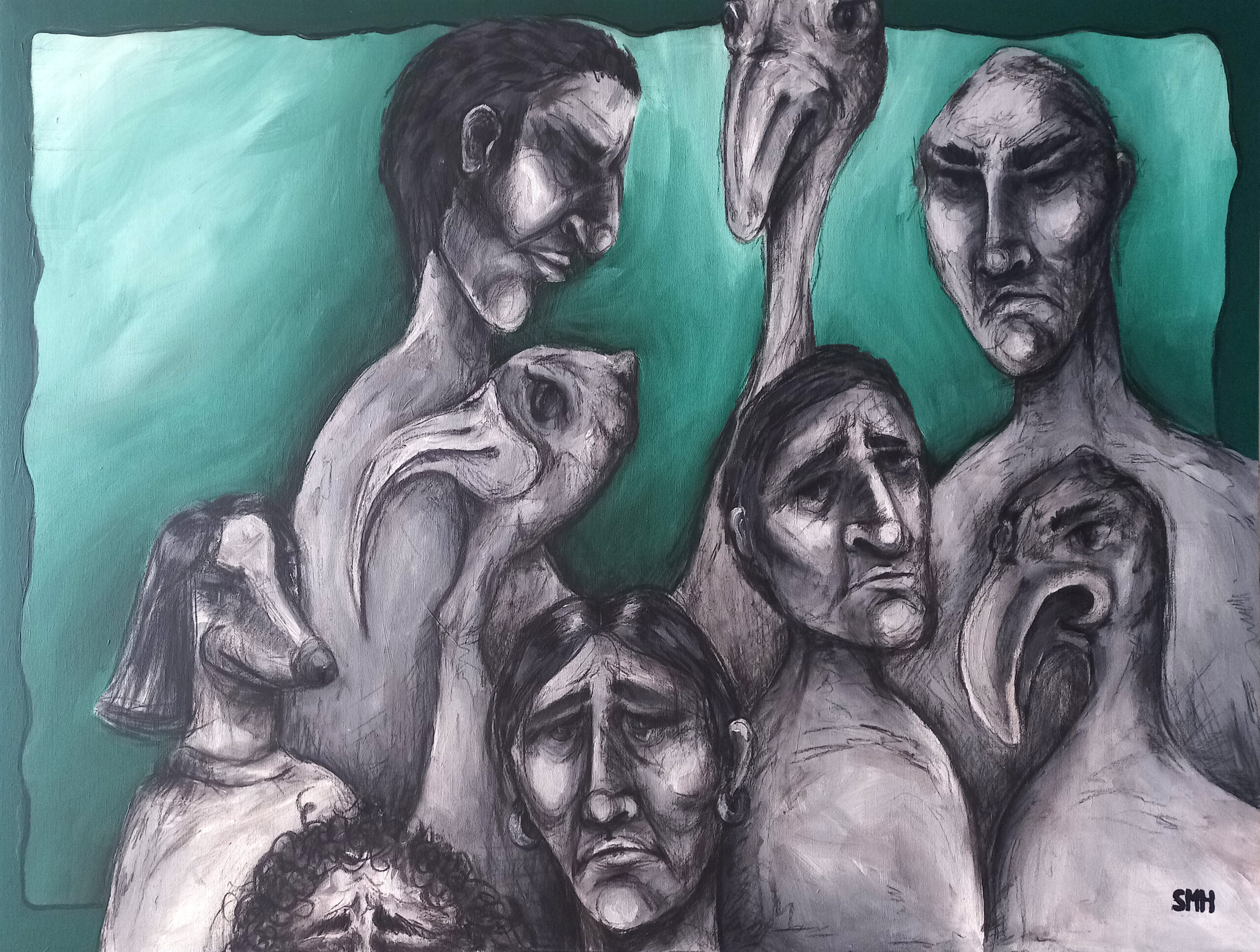 Acrylic, Graphite pencil and Charcoal on Canvas 200cm x 120cm